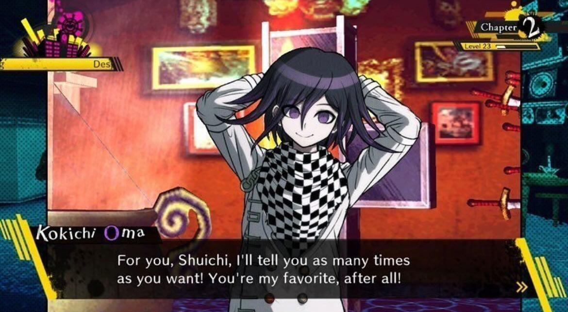 The way Kokichi says “the man I fell in love with” referring to Saihara in chapter 4, in an unskippable scene. The way they’re basically two sides of the same coin, truth and lies, aka basically v3.