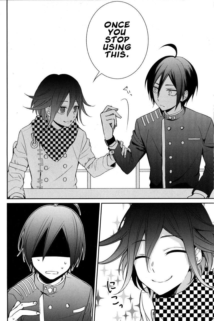 Which is why saiouma really popped up as a ship in the bonus mode, where there was no killing game. Kokichi didn't have to put an act there, while he was still full of doubt and was suspicious of others, but he let his guard down a bit, at least around Shuichi.