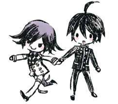 Kokichi shows interest in Shuichi, often calling him his "Beloved Saihara-chan" whom he loved the most, and also trusts Shuichi, despite having sworn to not trust anyone in the killing game. Shuichi, as a detective, sees Kokichi as a "puzzle" that he has to solve, leading to him wanting to know more about Kokichi.